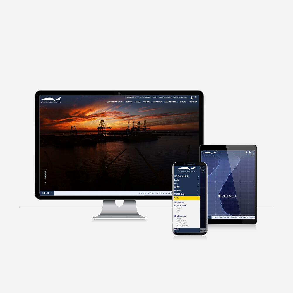 Diseño gráfico, estructura de contenidos y programación de la web. Las necesidades de comunicación de la Autoridad Portuaria de Valencia para su web son muy diversas por lo que se planteó, junto al equipo de la Autoridad, una estructura consistente y formalmente muy jerárquica para que cada tipo de usuario de la comunidad portuaria tenga fácil acceso a sus contenidos. A partir de esta estructura se construyó el proyecto.